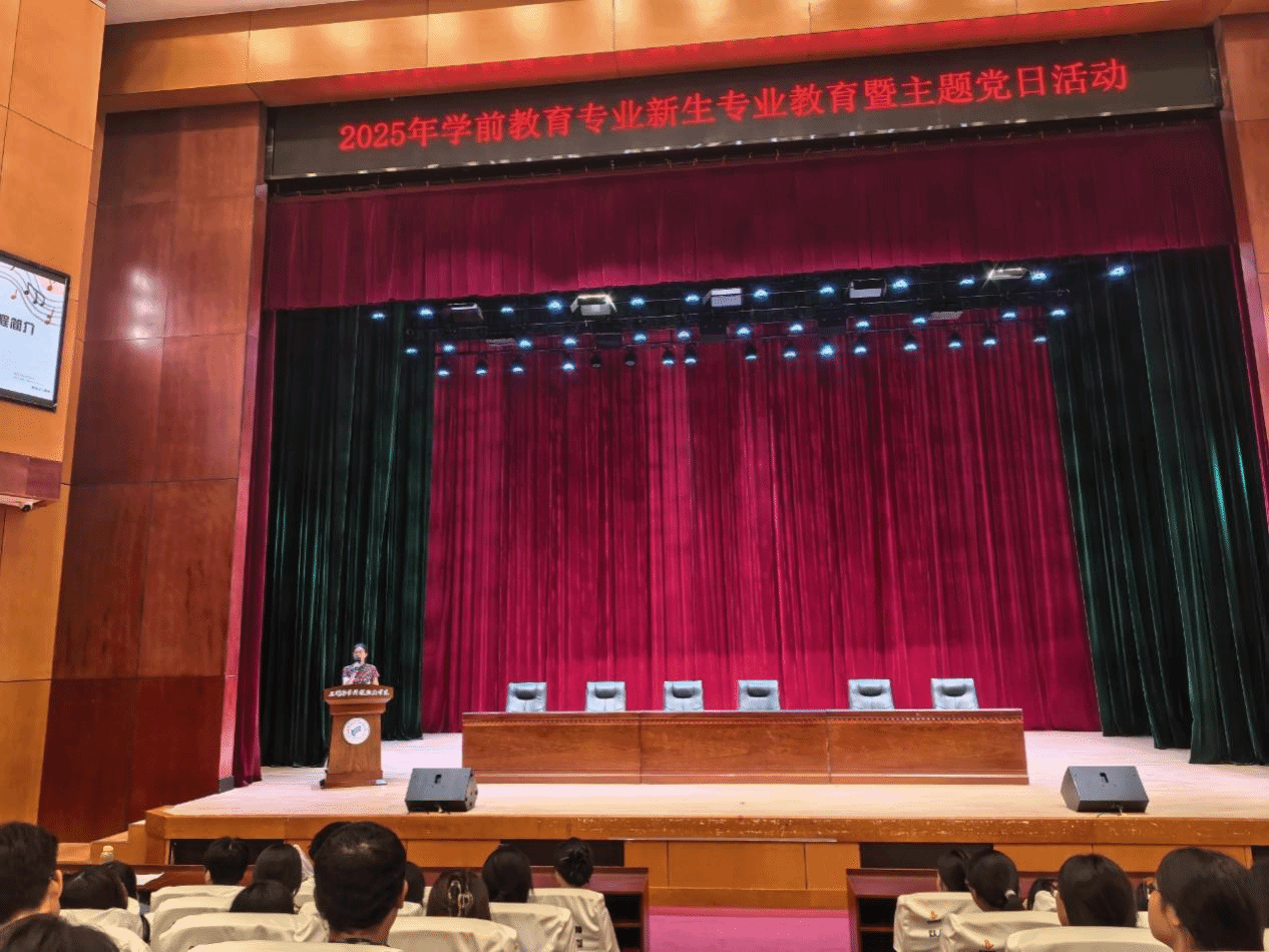 为充分发挥基层党组织在立德树人工作中的战斗堡垒作用,助力新生扣好大学生涯“第一粒扣子”,9月29日下午,学前教育党支部在秉绶楼音乐厅举办了2025级新生专业教育暨主题党日活动,活动由党员教师江琴英老师主持,2025级学前教育专业新生及学前教育党支部全体教师参与本次活动。