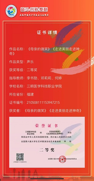 我院人文与教育系在教书育人工作中坚持学生为根本,抓实学风,重视提高学生的道德修养、知识水平、实践能力,着力培养德才兼备、技能过硬的高素质人才,重视人才质量提升,2021年组织学生参加大学生艺术展演活动、省职业院校技能大赛、“幼乐美”杯全国职业院校早期教育技能赛、省学前教育专业教育技能大赛等系列比赛。各项技能比赛呈多点绽放,全面开花的可喜局面,获国家级二等奖两项、省级一等奖一项、二等奖两项、三等奖两项。同时坚决把学生就好业、高质量就业作为落实“立德树人”教育使命成效检验的重要指标,不断强化就业大局观,强力推进毕业生就业工作。