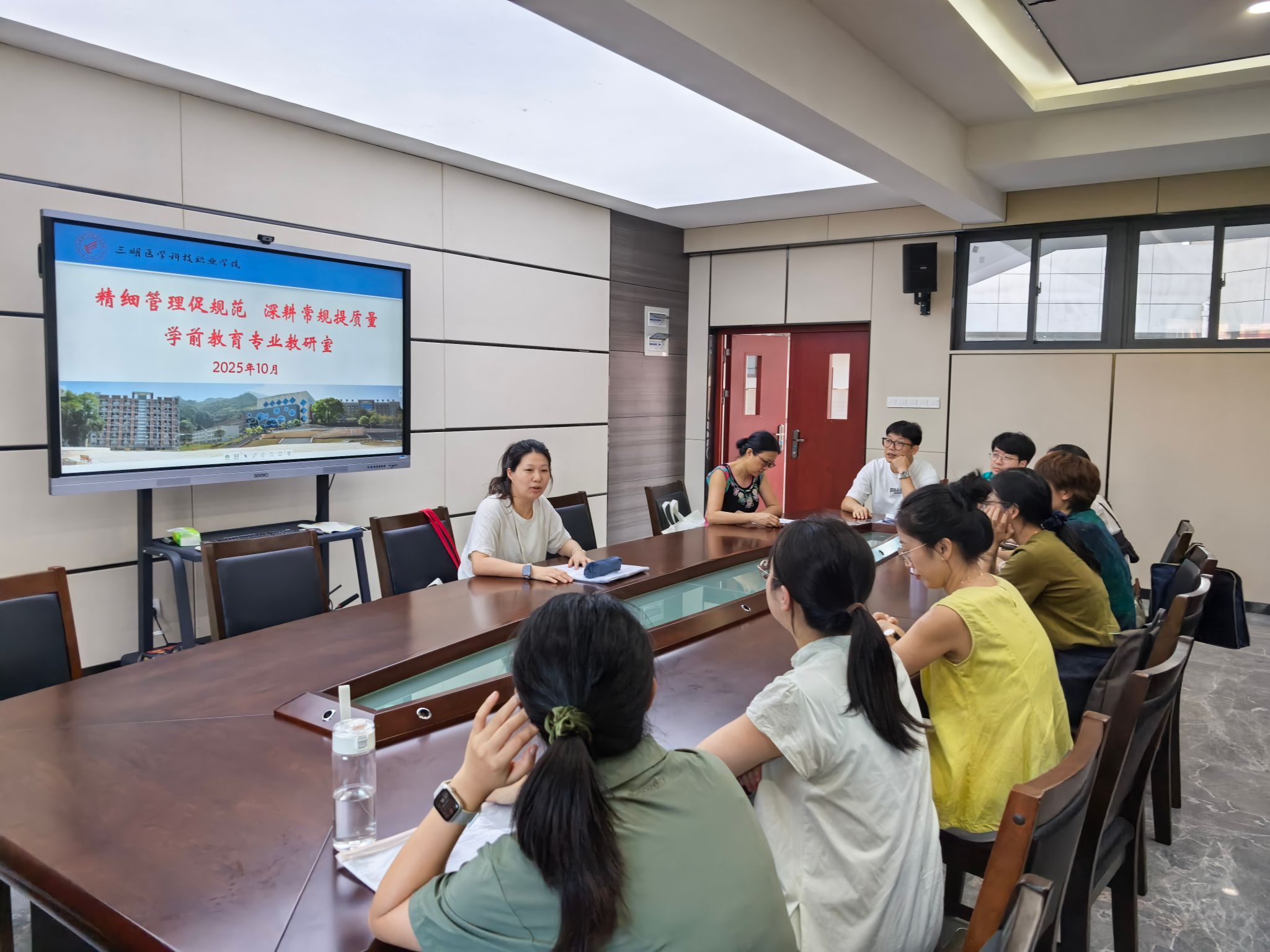 为持续提升人才培养质量,学前教育专业教研室于2025年10月15日下午在秉绶楼601会议室召开“精细管理促规范,深耕常规提质量”主题工作会议。会议由教研室主任刘荔老师主持,全体专业教师参加。