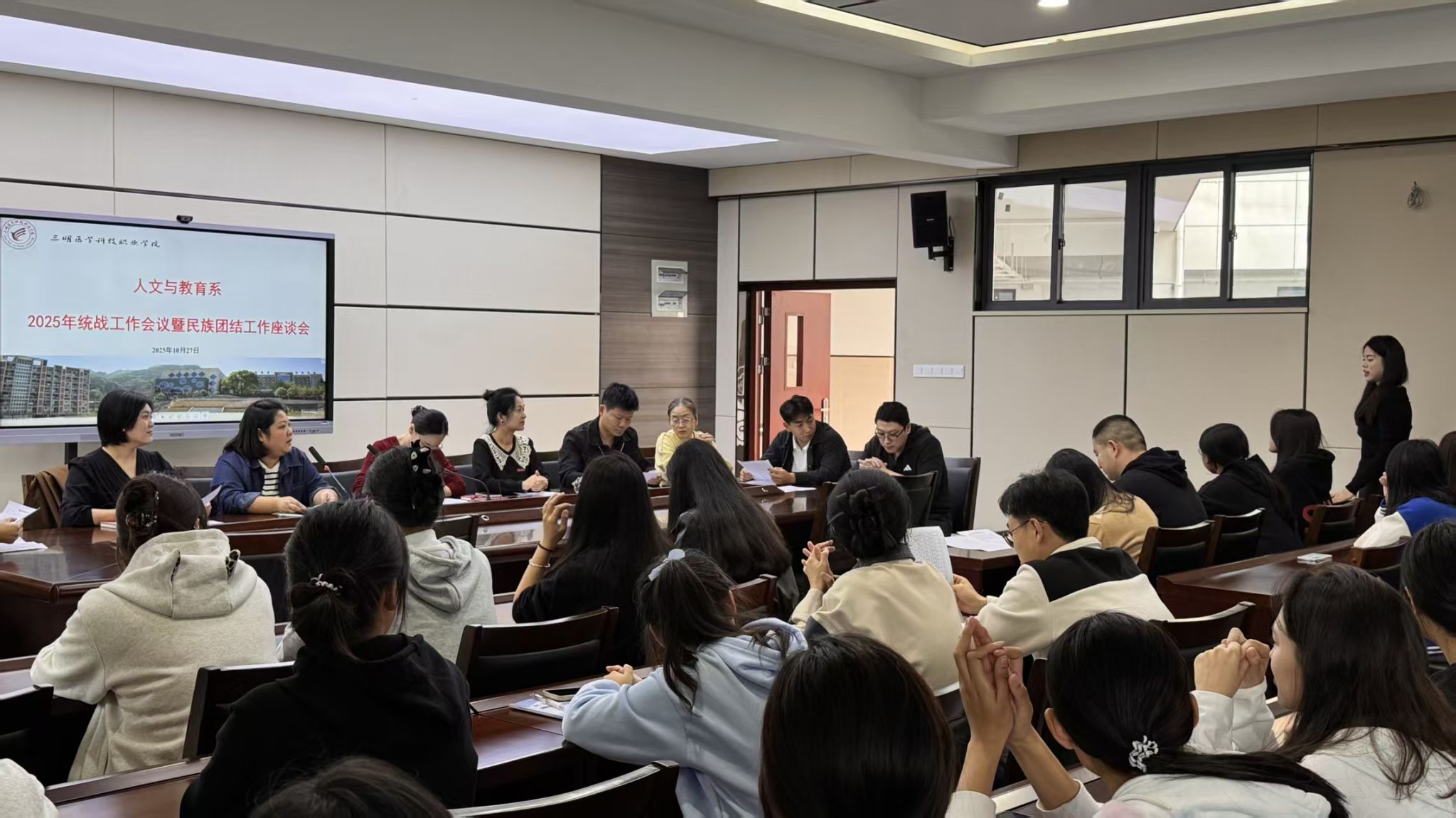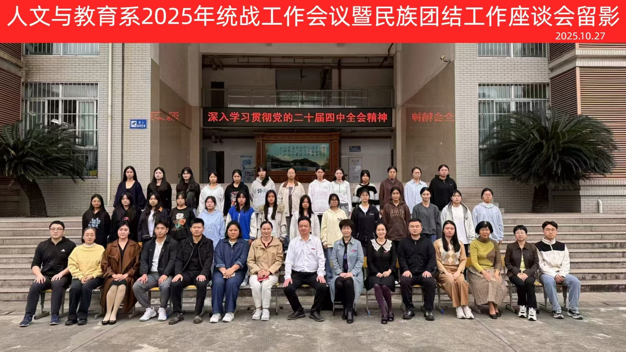 为深入学习贯彻习近平总书记关于新时代党的统一战线工作的重要思想,落实学院党委统战与民族工作部署,充分发挥统战法宝作用,推动民族团结教育落地校园,10月27日下午,人文与教育系召开2025年统战工作会议暨民族团结工作座谈会。系领导班子、民主党派教师代表、少数民族教师代表、教师代表、新生辅导员及42名少数民族新生参会,共话团结情谊,共绘成长蓝图。