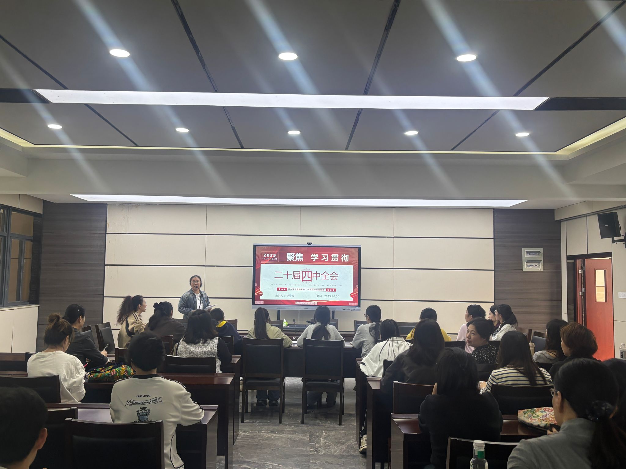 10月30日下午,为深入学习贯彻党的二十届四中全会精神,学前教育、早期教育、托育专业三个党支部在秉绶楼601会议室联合举办专题党课,由早期教育党支部书记李春梅同志主讲,三个支部的全体党员教师及学生预备党员共同参加。