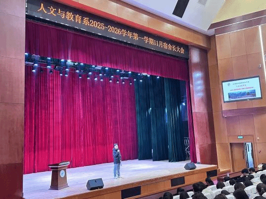近期,为切实加强学生宿舍冬季安全管理,提升宿舍长的责任意识与管理能力,人文与教育系召开2025-2026学年11月宿舍长大会。系团委书记兼学工办主任林少舟老师、全体辅导员出席该会议,会议由辅导员俞隆天老师主持。