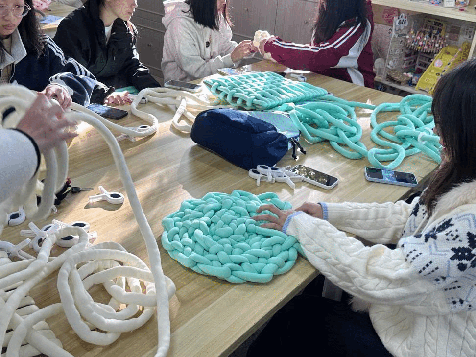 11月23日下午,首场“送你一方柔软”手工编织活动顺利开展活动现场,工作人员组织签到后,主持人讲解毛线编织方法,同学们领取毛线材料,以抱枕、坐垫等为创作方向自由发挥。大家有序分组,从学习基础针法到结合想象调整样式,在指尖劳作中交流技巧、相互协助,最终完成的成品各具巧思,美观与实用兼备。不少同学带着自己织就的“温暖物件”拍照留念,在创作中收获了专注的愉悦与创造的成就感。