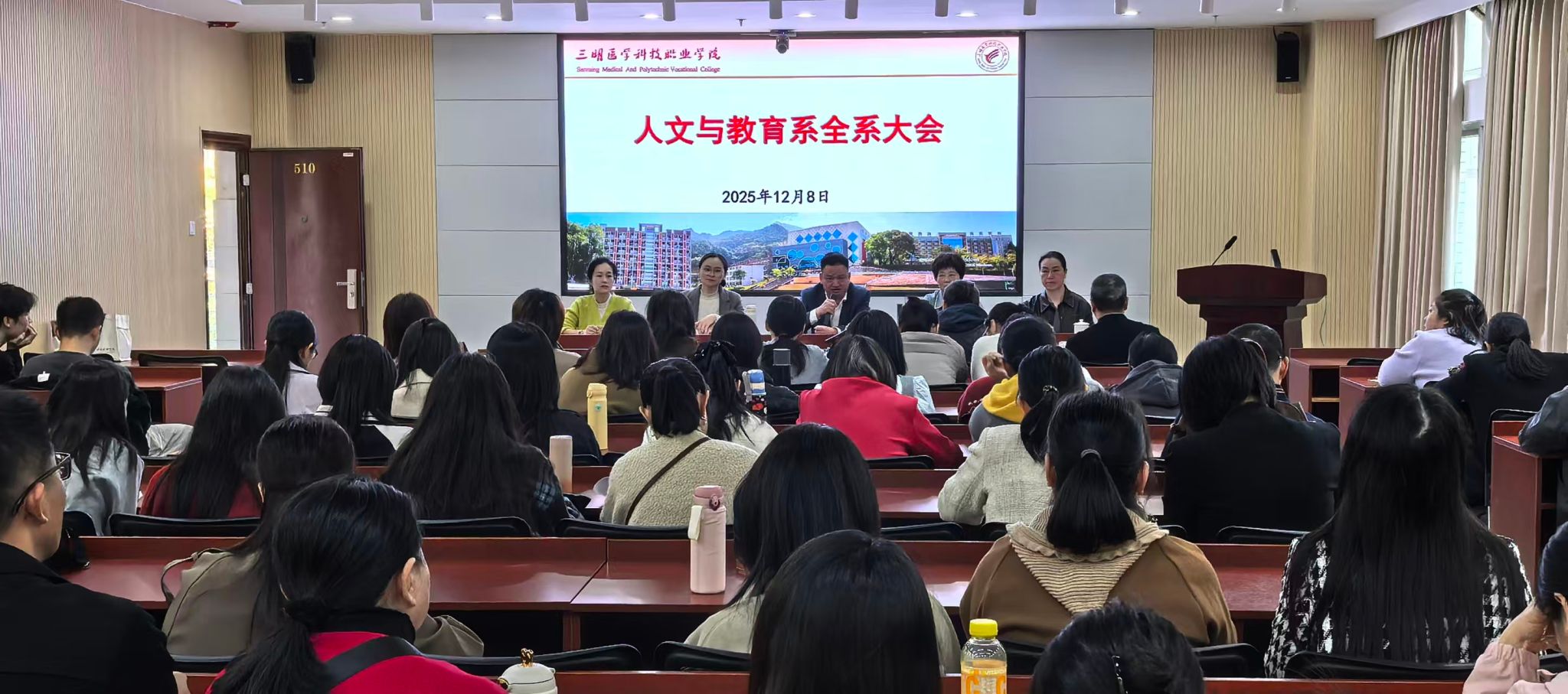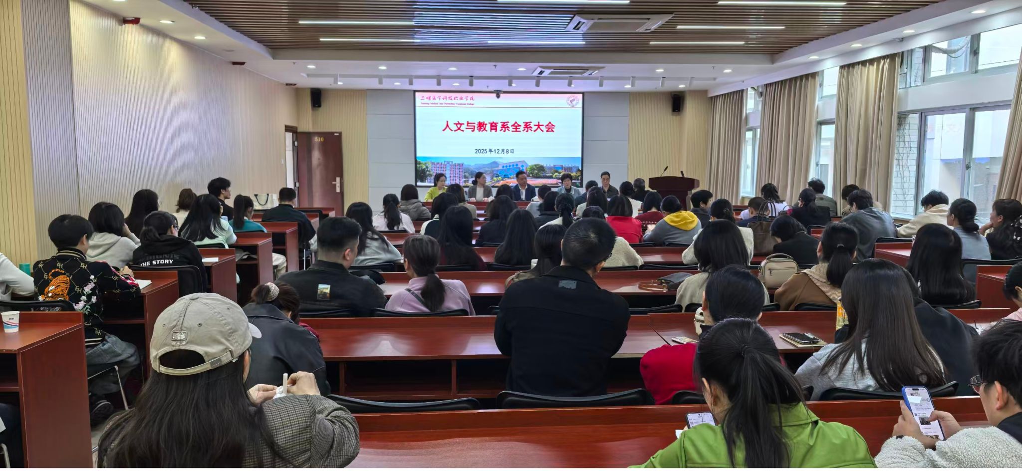 12月8日,人文与教育系在行政楼510会议室召开全系教职工大会,集中学习党的二十届四中全会精神,统筹推进学期收尾与重点项目攻坚,系领导班子及全体教职工参会。