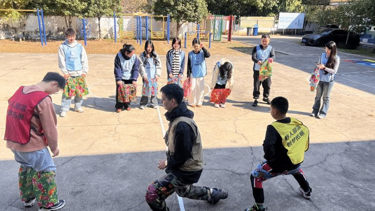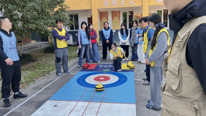 随着队旗设计的结束,团建课程正式拉开帷幕。室内活动区的“旱地冰壶”项目让大家在趣味竞技中学会适应团队结构变动,通过精准沟通与彼此信任,共同为团队目标努力。而“巧穿花裤”项目,则让原本略显生疏的伙伴们瞬间打破隔阂。