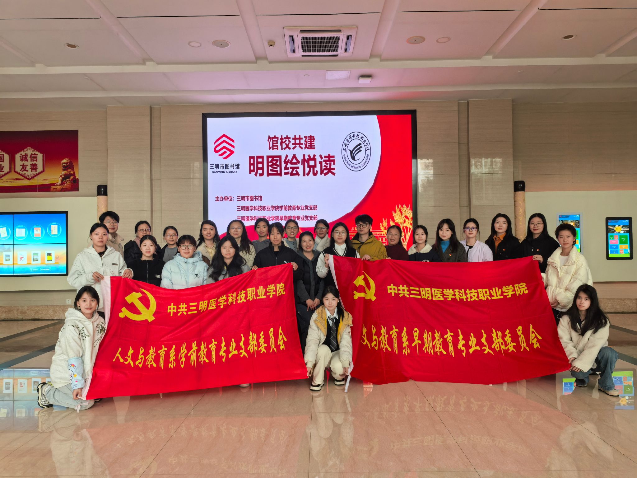 12月13日上午,由三明市图书馆联合三明医学科技职业学院学前教育专业党支部、早期教育专业党支部共同策划的“明图绘悦读”亲子绘本故事会活动暨“行见八闽”主题党日活动正式启动,也标志着学前教育专业党支部“强国行”校外实践活动拉开帷幕。支部全体党员教师,入党积极分子参加了本次活动。