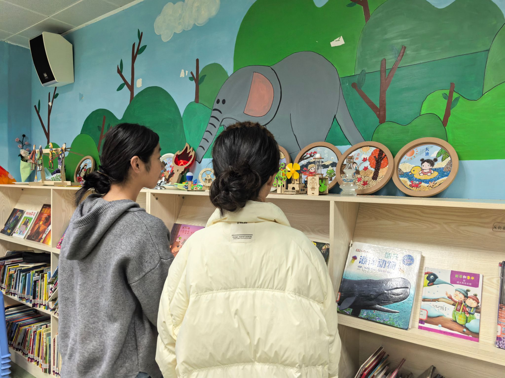 活动现场,图书馆工作人员介绍活动内容后,带领众人参观绘本馆并合影留念。之后,学生志愿者发挥专业优势,先后开展情景化绘本故事会与亲子手工创作环节,以趣味互动形式点亮亲子阅读时光。