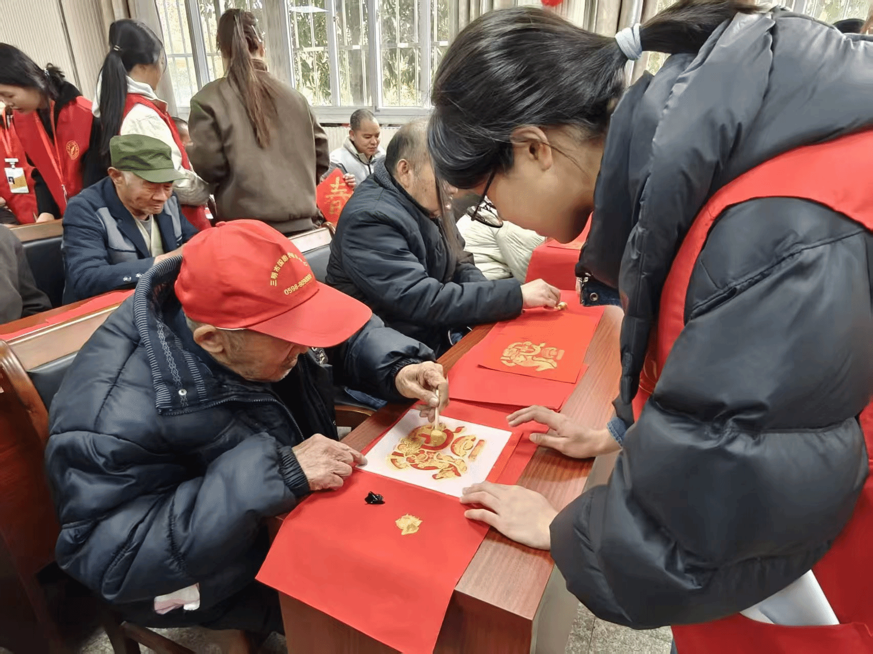 活动当天,人仁志愿服务队的志愿者们为老人们准备了拓印工具和“福”字的图案模板,邀请老人们亲手参与拓印。老人们体验了从调墨、上纸到拓印的完整过程,从一笔一划、一拓一印,认真地完成自己的作品,有的老人还在“福”字旁写上自己的名字,为这份“福气”增添了独特的纪念意义。