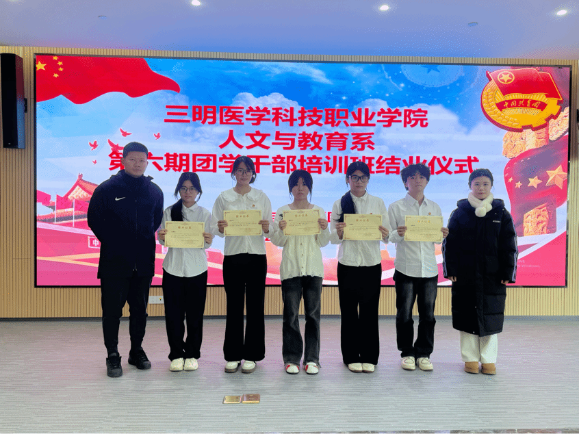 1月9日,人文与教育系在景初楼101会议室举办第六期团学骨干培训班结业仪式。系团委书记兼学工办主任林少舟,辅导员黎沁雯老师出席结业仪式并为学员颁发结业证书。此次培训班历时2个月,内容涵盖团委改革文件学习、常用办公室软件使用、交流研讨等方面,共有59名学员顺利结业。