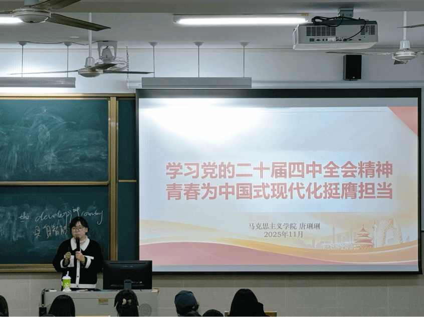 12月11日,马克思主义学院副院长唐琍琍以“青春为中国式现代化挺膺担当”为主题,开展党的二十届四中全会精神专题培训班。增进我系学子们对党的二十届四中全会精神感悟,激励团学干部们切实把理论学习成果转化为服同学的实干成效。