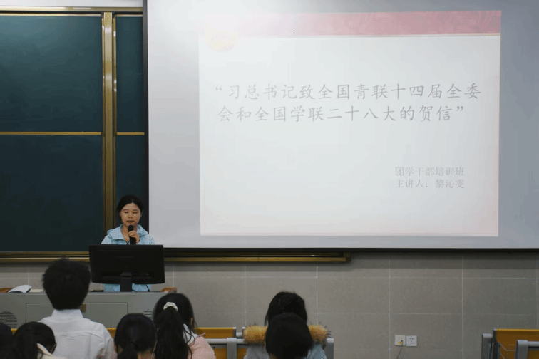 12月8日,第六期团学骨干培训班举行开班仪式。人文与教育系党总支副书记卢静老师进行开班动员,黎沁雯老师带领大家学习《习近平总书记致全国青联十四届委员会和全国学联二十八大贺信》,并强调团学干部要肩负引领青年,服务青年的重任。