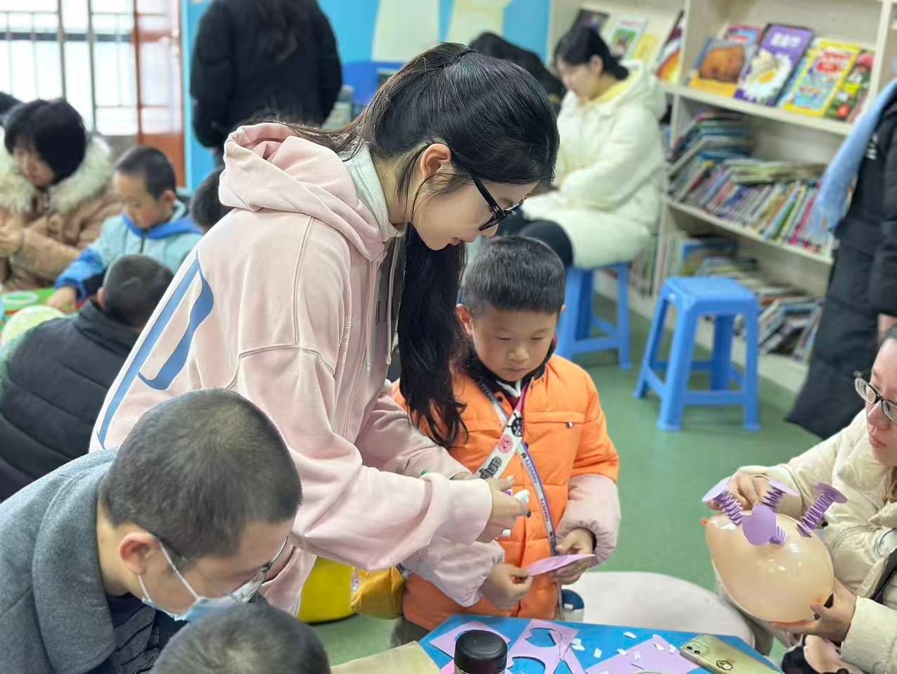 1月24日上午,三明市图书馆内童声笑语,暖意融融。早期教育专业党支部开展了一场充满创意与温情的亲子公益服务活动。本期活动由宋玉婷老师指导并带队开展,学生党员与积极分子共同实施,以创新的形式和温暖的互动,赢得了市图书馆工作人员及参与家长的一致好评。