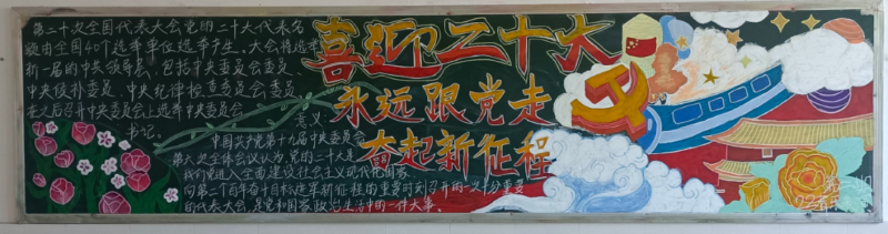 本次主题板报活动,激励青少年要争取做砥砺奋进的中国共产党人,矢志为中国人民谋幸福,为中华民族谋复兴。山河披锦绣,盛世写华章;学习二十大,永远跟党走,奋进新征程。