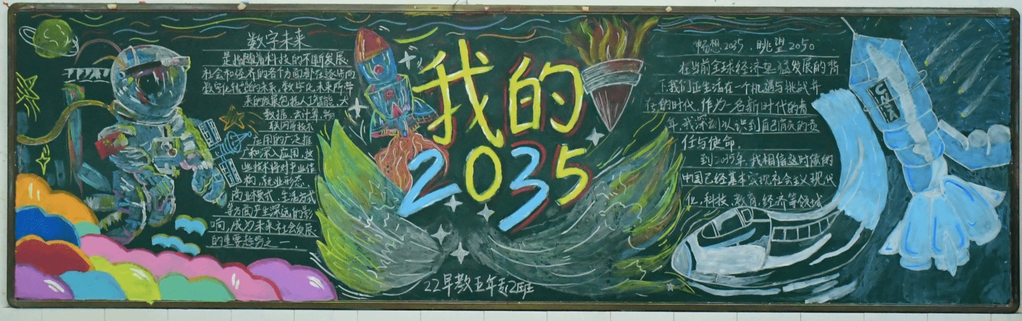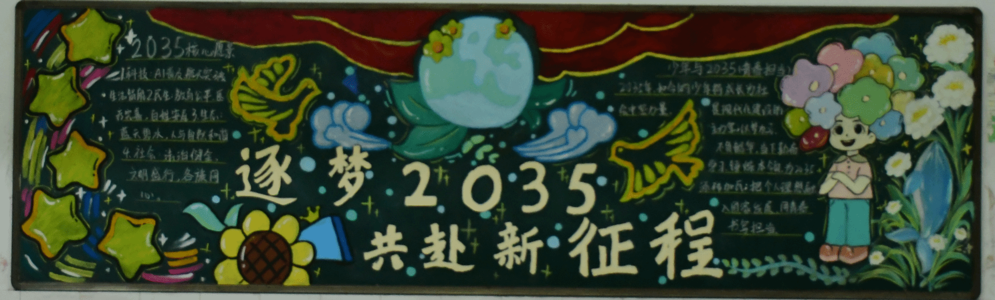 通过图文并茂的表现形式,各班直观地呈现了党的二十届四中全会提出的一系列重大目标任务和战略部署,围绕数字未来、乡村振兴、文化自信等关键词畅想2035,将个人成长与国家发展紧密结合,生动诠释了新时代青年对中国式现代化的理解与担当。